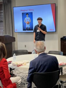 At the American Heart Association 2025 state advocacy day in Oklahoma City, Magnus urged lawmakers to ensure every school is prepared to respond to a cardiac emergency with a cardiac emergency response plan, CPR-trained staff and coaches, and accessible AEDs. Later that year, Magnus traveled to Capitol Hill in Washington, D.C., where he encouraged his elected representatives to fully fund the HEARTS Act, a law unanimously passed by Congress in 2024 that established a new federal grant program designed to ensure every school is equipped and prepared to respond to a cardiac emergency.