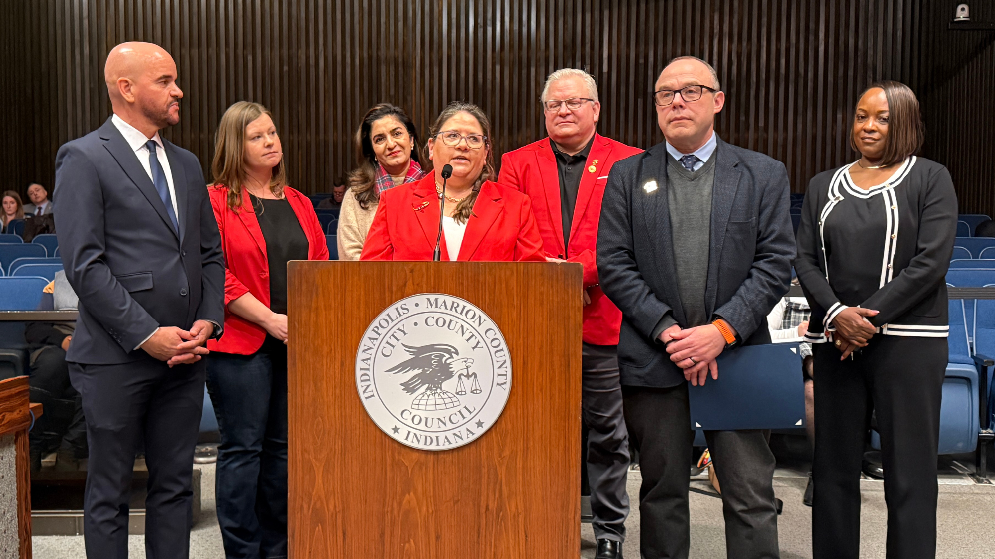 Councilors John Barth, Ron Gibson, and Rena Allen presented us with a Resolution recognizing Heart Month and Wear Red Day. It was wonderful to hear every member of the Indianapolis City-County Council vote unanimously to celebrate the work of the AHA, AEDs and Cardiac Emergency Response Plans, Bystander CPR, and Go Red for Women.